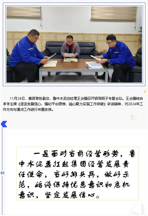 【李总讲话大家谈】鲁中水泥:坚定信心促发展 凝心聚力增效益